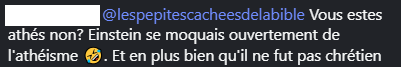 Ce chrétien tente de détourner le sujet, faute de savoir comment répondre à l’essai d’Albert Einstein, qui violente sa religion.