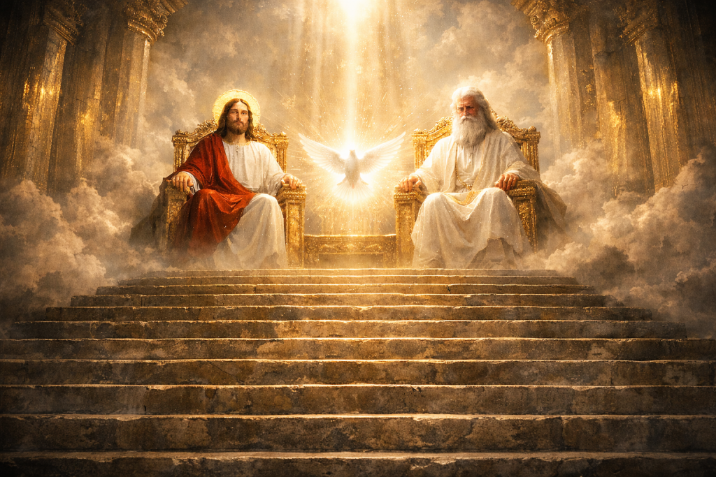 Avant tout, il faut rappeler que Jésus affirme qu’il est un être divin — il se présente comme siégeant à la droite de Dieu le Père, pardonne en Son nom et se dit être Un avec Lui ; en résumé il est aussi Dieu.