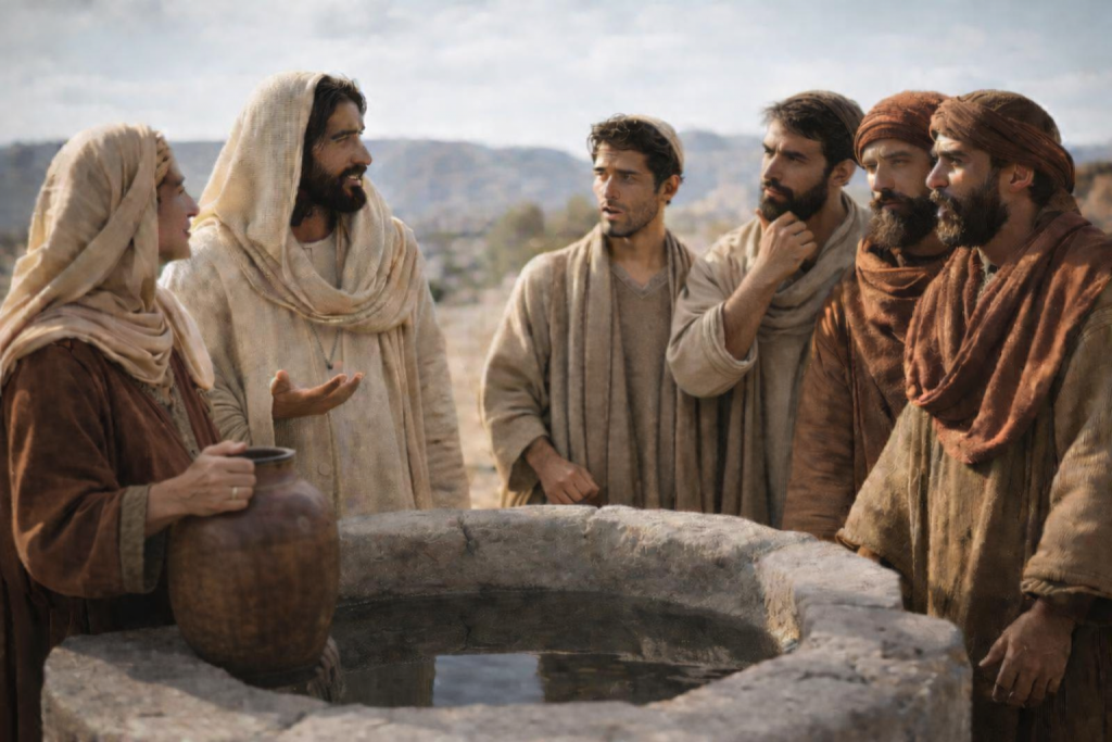 Là-dessus arrivèrent ses disciples, qui furent étonnés de ce que Jésus parlait avec une femme.